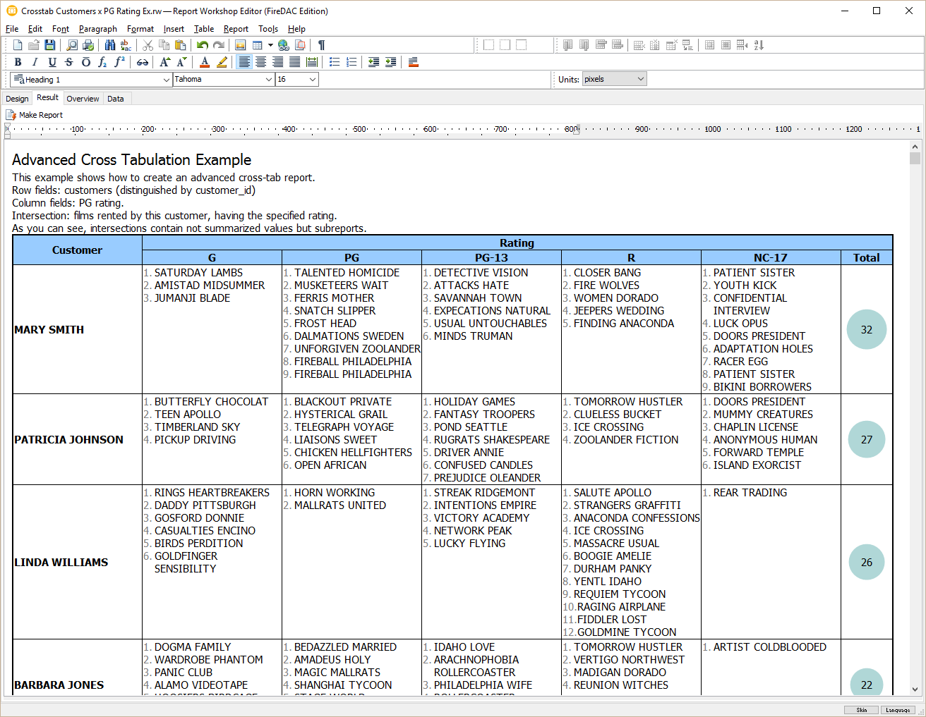 How to generate columns by separate data queries, how to use caption fields, how to use cross-tab tables as a detail in a master/detail report: