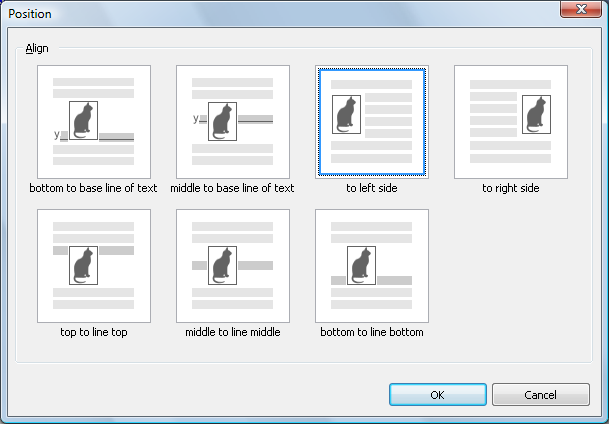 - Left- and right-aligned objects: images, controls, text labels. New paragraph properties controlling text flow around side-aligned objects.